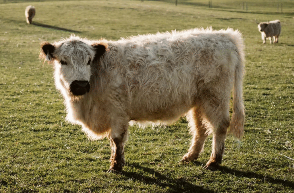 Elwyn was born winter 2024. He is a 2nd generation bull on our farm. His father is one of our foundational herd sires, Cyrus. Elwyn’s temperament is one of the best. He is respectful of our space, but loves scratches and delicious treats!