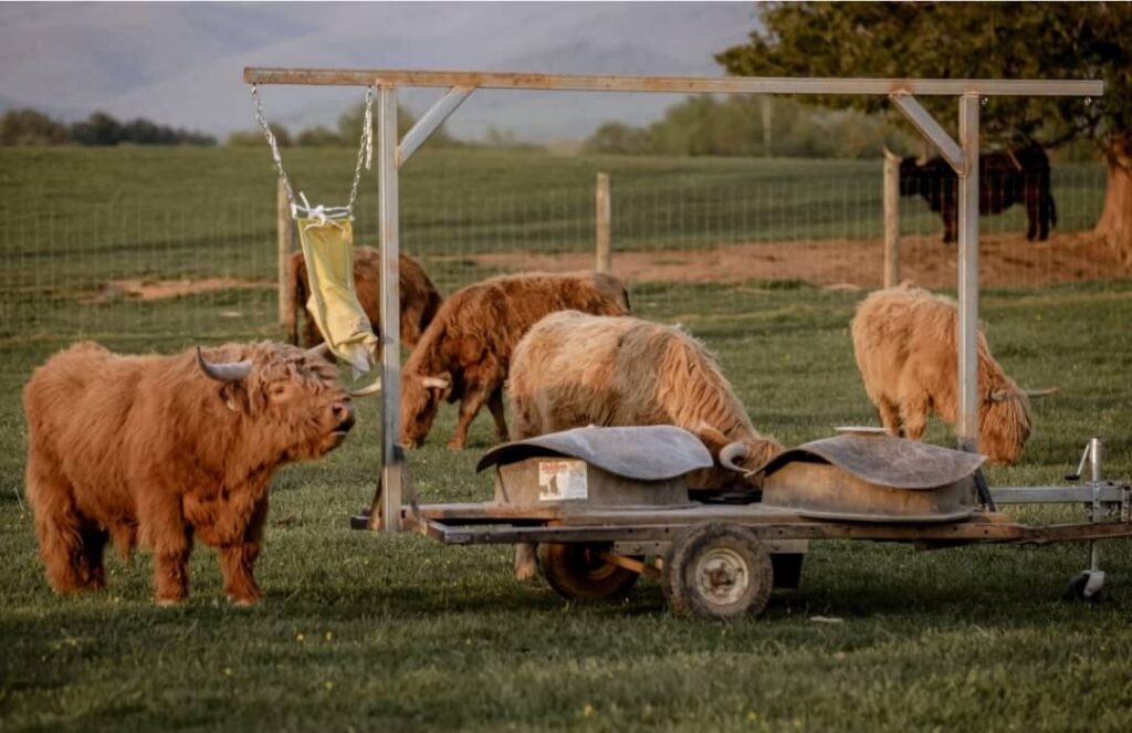 Highlands love to scratch! Without a safe option, they’ll rub on fences, posts, or tractors. A cattle brush provides: